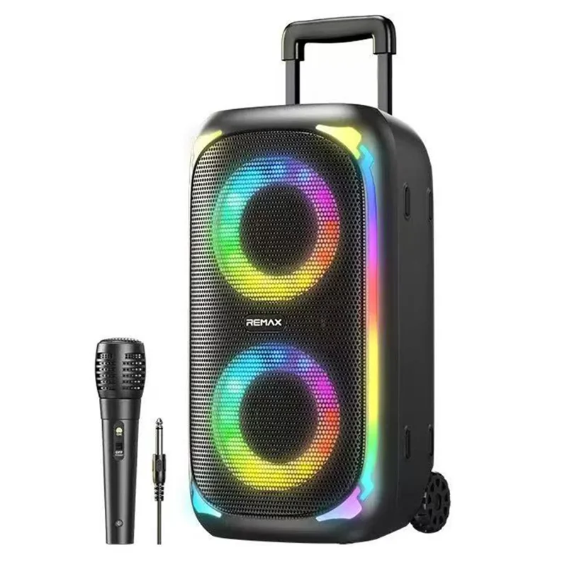 REMAX RB-X2 20W Bluetooth კარაოკე დინამიკი გასაშლელი სახელურით და მიკროფონით, RGB განათებით გარე წვეულებისთვის